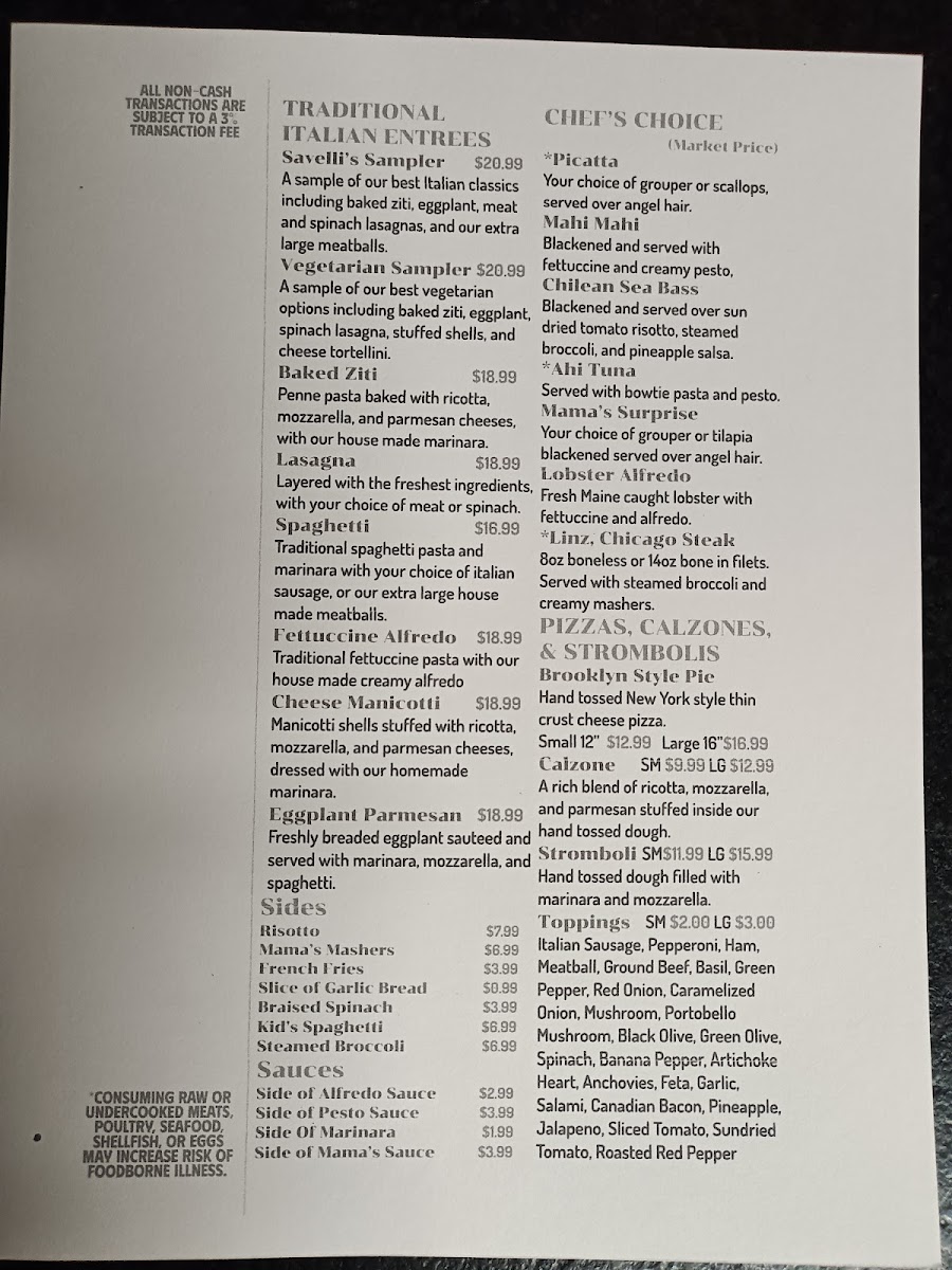 The atmosphere at Savelli's is equally appealing, boasting a cozy interior that encourages meaningful conversations and cherished memories. The space tends to fill quickly, especially during peak dining hours, so consider making a reservation to ensure you don't miss out on this culinary treasure. Customers rave about the charming ambiance and consistently exceptional food, with many calling it a must-visit for everyone who appreciates true Italian flavors.